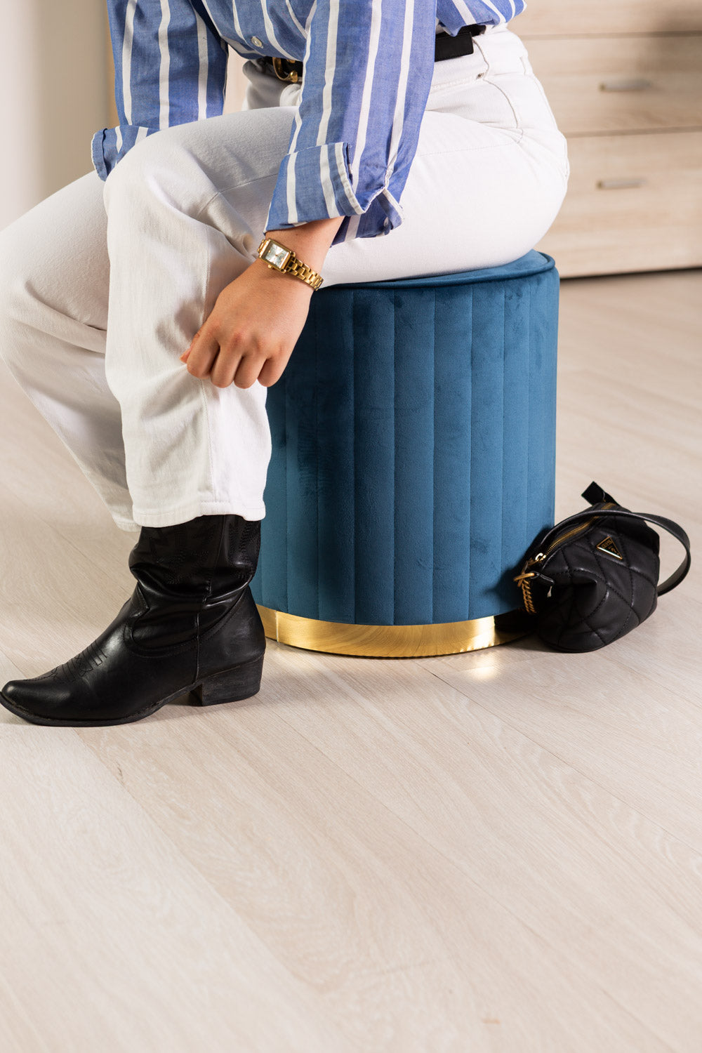 Dodajte dašak elegancije i udobnosti svojim prostorima s našim podstavljenim RUBY pufom , prekrivenim mekim prošivenim baršunom .