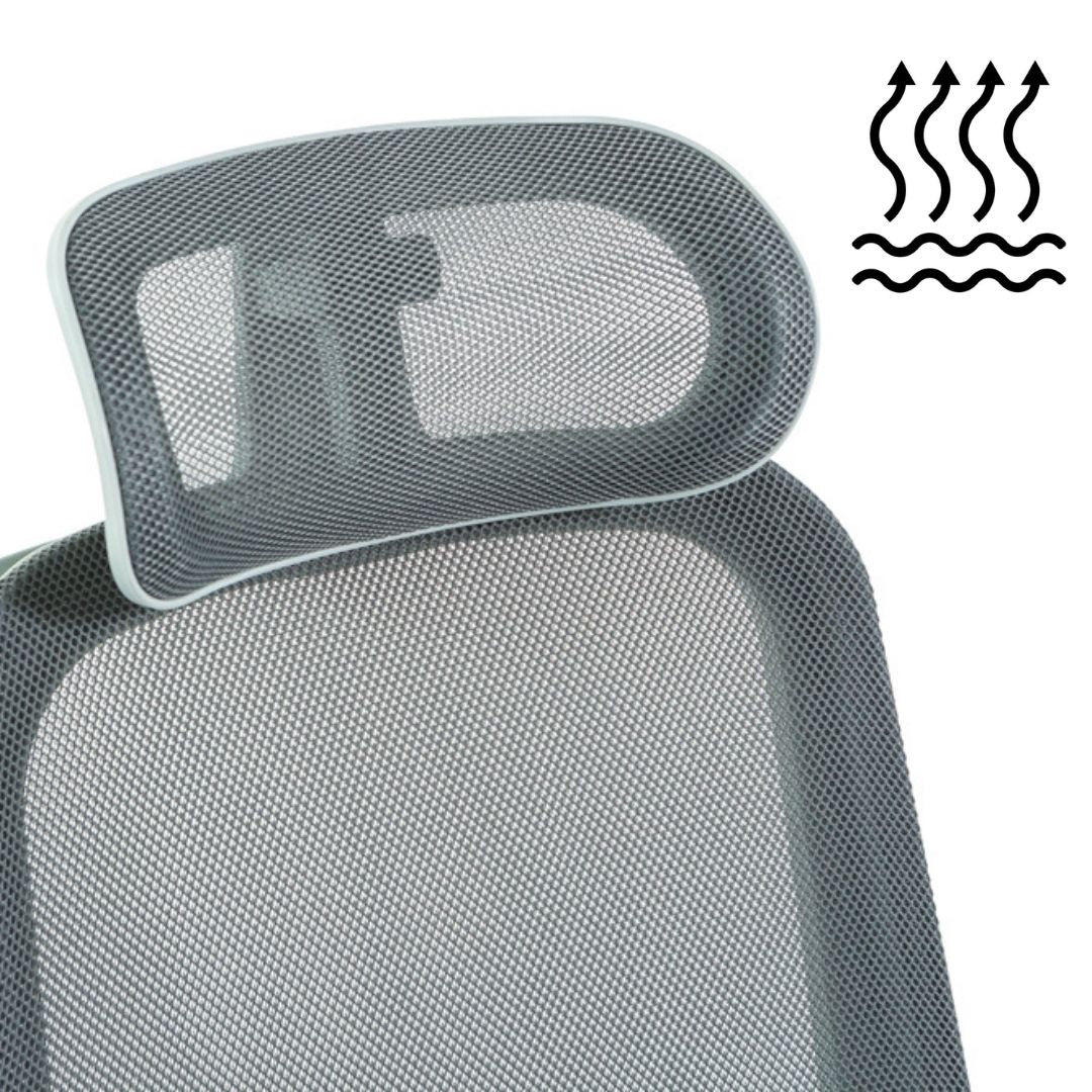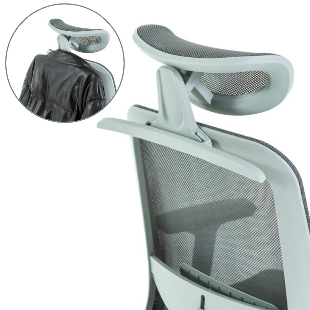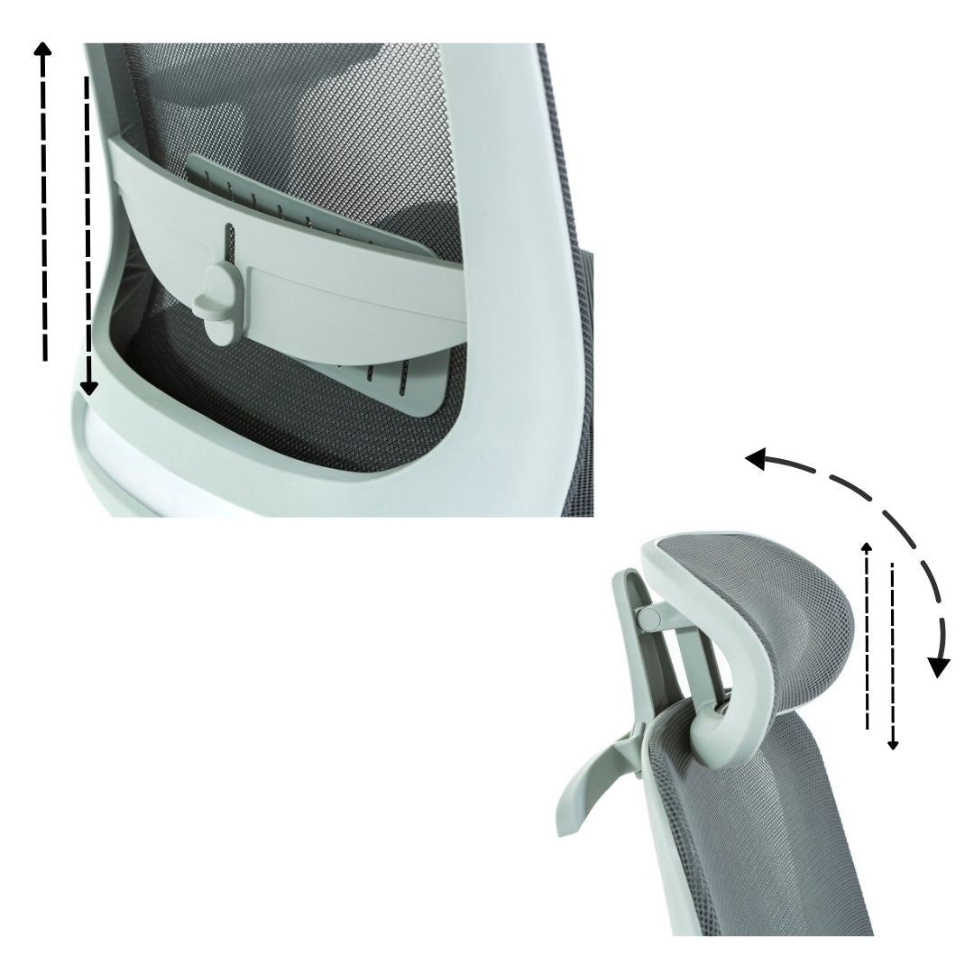 Naslon stolice ima podesivu lumbalnu potporu , dizajniranu kako bi se osiguralo pravilno držanje i smanjilo naprezanje leđa. Naslon za glavu , također podesiv po visini i nagibu, pruža dodatnu potporu za područje vrata. Naslon stolice ima praktičan držač za kapute ili jakne , idealan za održavanje urednosti u uredu.