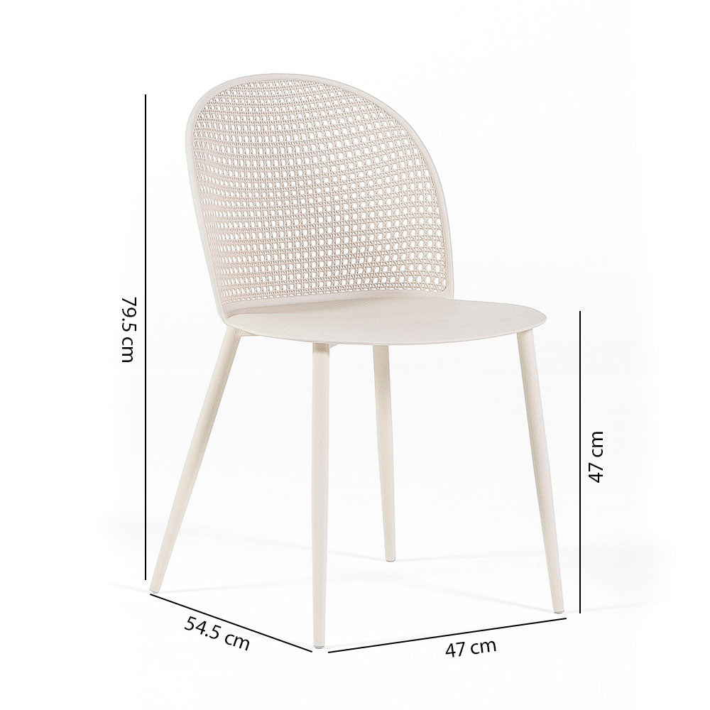 Naslon, sa svojim zamršenim tkanim efektom, ne samo da dodaje dašak profinjenosti, već i osigurava udobnost i potporu tijekom korištenja. Ove stolice idealne su za unutarnje prostore, ali zahvaljujući svojoj izdržljivosti, savršene su i za zaštićene vanjske prostore, poput terasa i veranda.