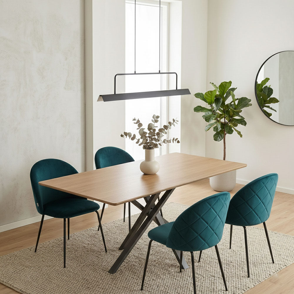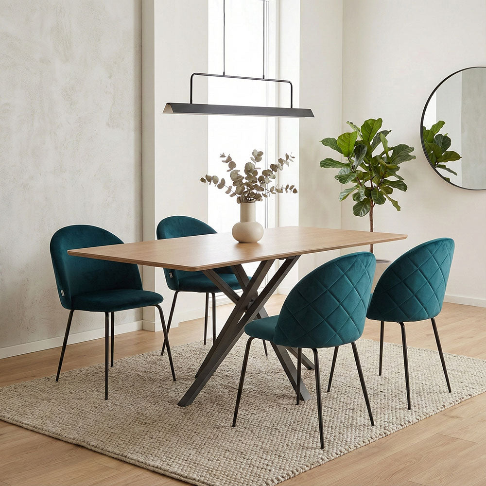 Mekana, elegantna tkanina nudi osjećaj udobnosti i luksuza, dok metalne noge pružaju stabilnost i čvrstoću.