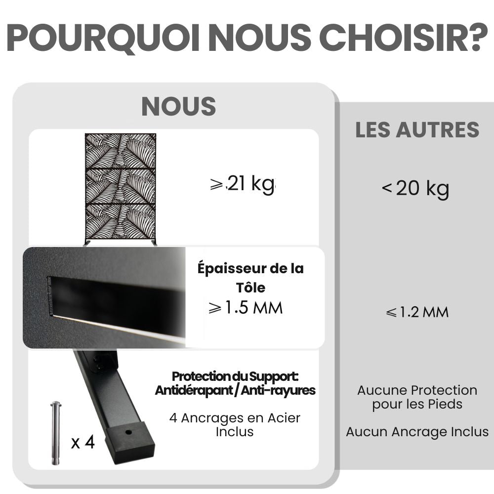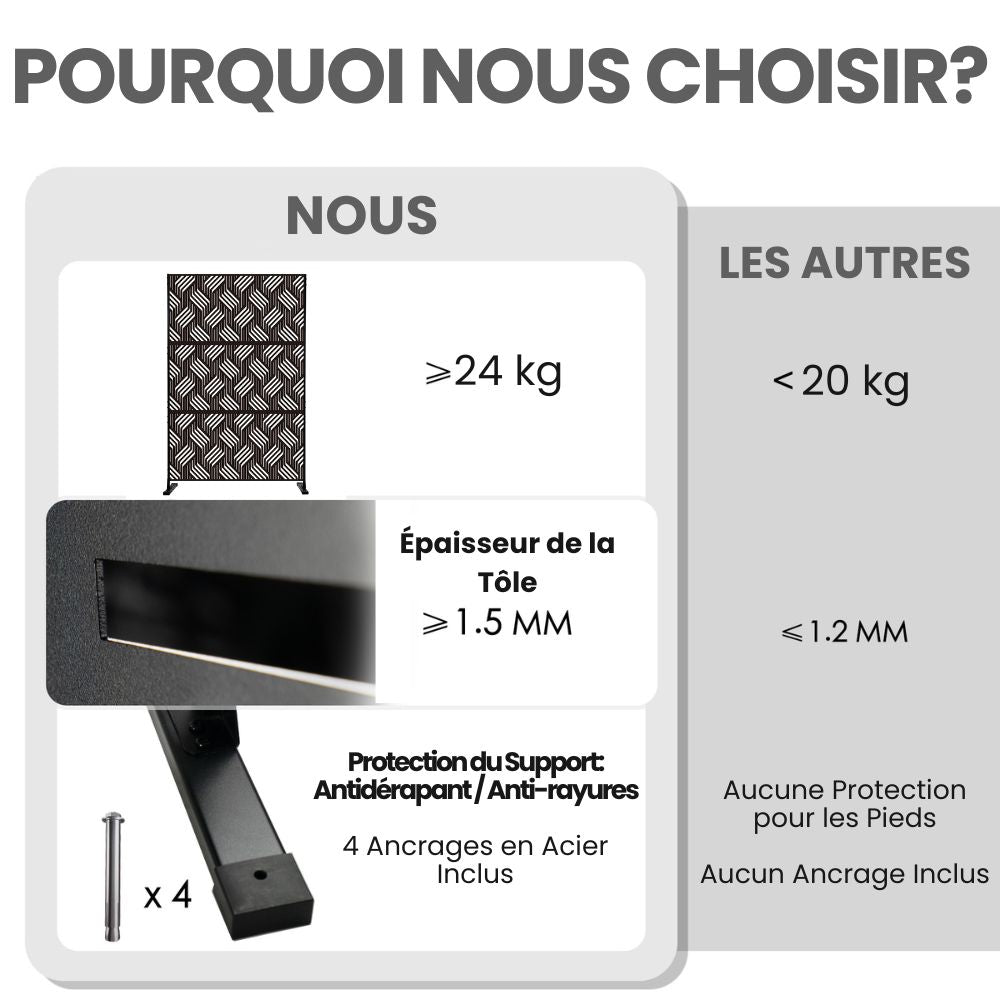 Savršene su za vrtove, terase, balkone, urede, restorane i poslovne prostore te vam omogućuju elegantnu i praktičnu organizaciju prostora. Jednostavne su za sastavljanje i premještanje te su idealan izbor za sve koji traže izdržljivu, modularnu pregradu sofisticiranog dizajna.