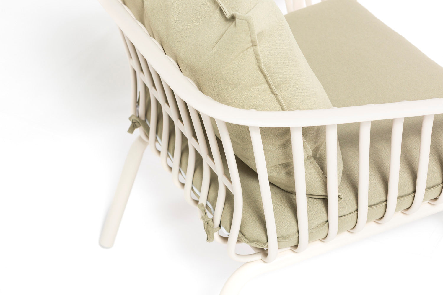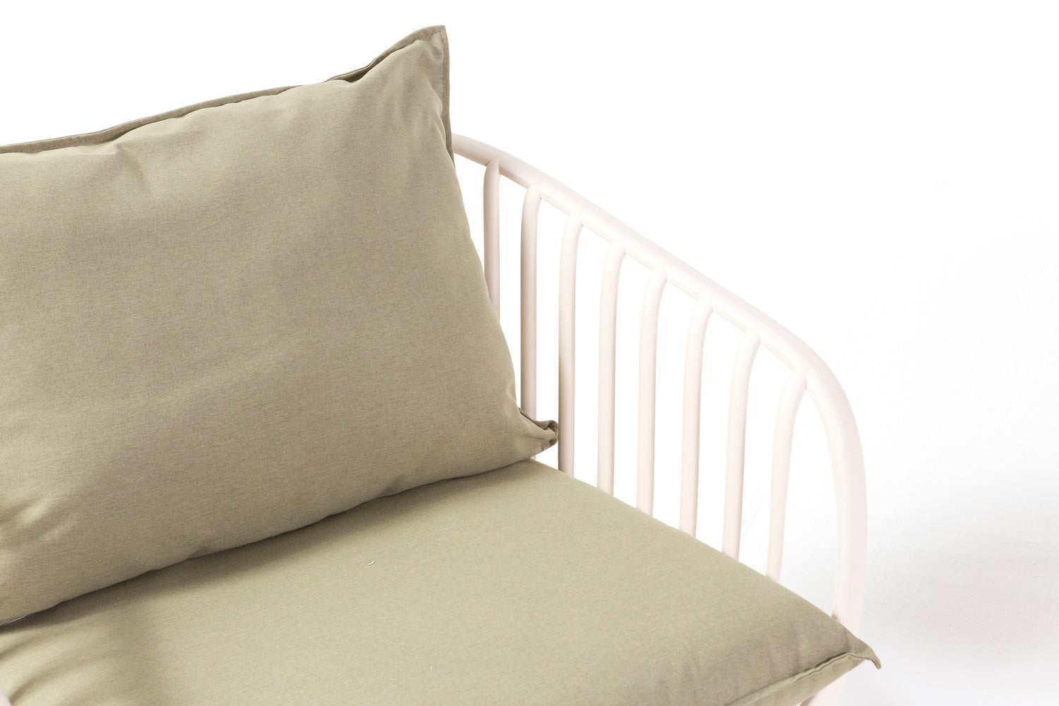 Krem boja jastuka savršeno se slaže s kaduljasto zelenom strukturom, stvarajući elegantan i opuštajući efekt.