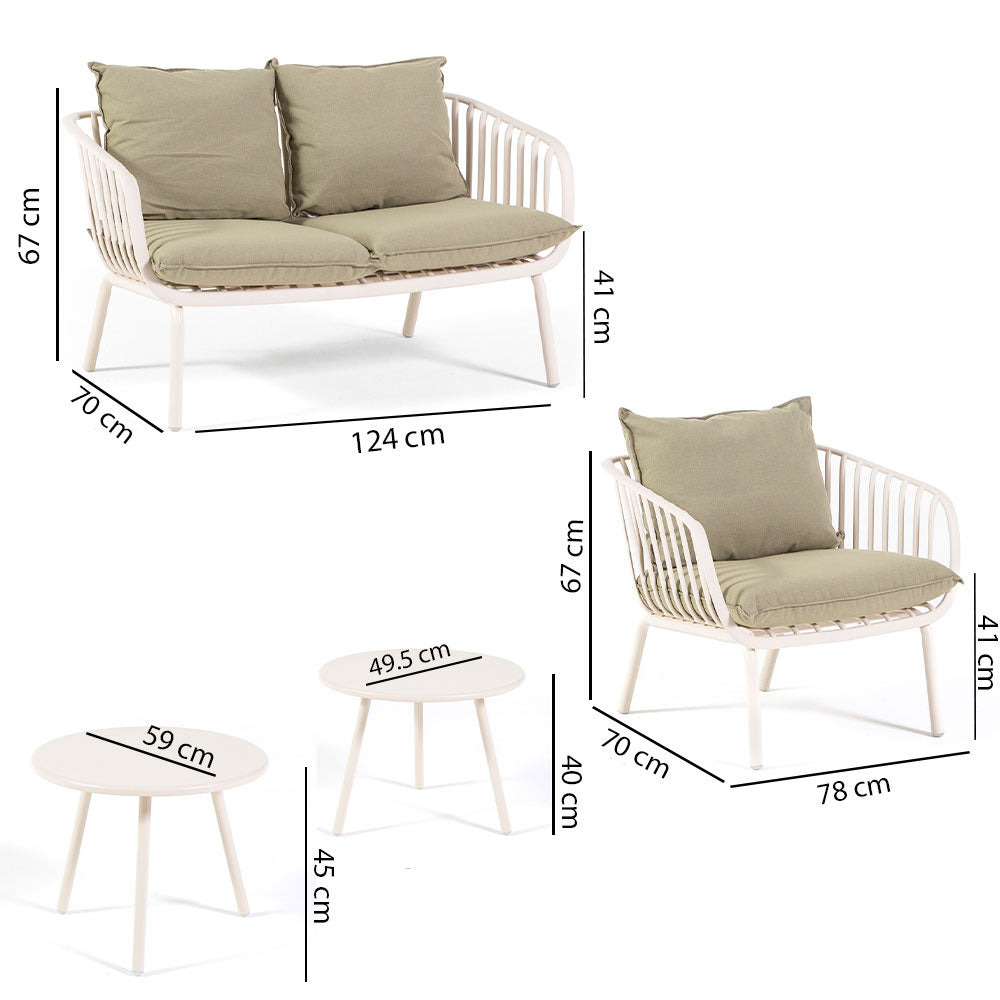 Ovaj set je savršen za vrtove, terase i verande, dodajući dašak elegancije i udobnosti vašim trenucima opuštanja na otvorenom.