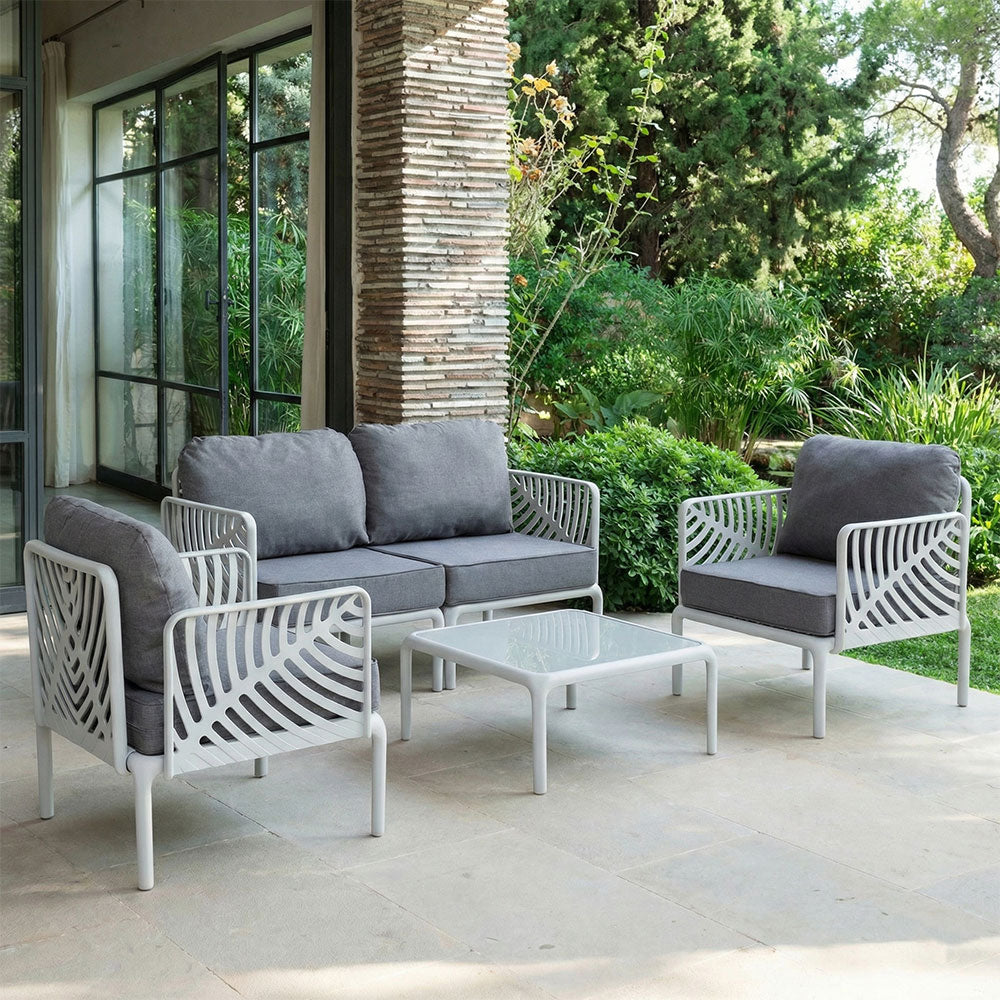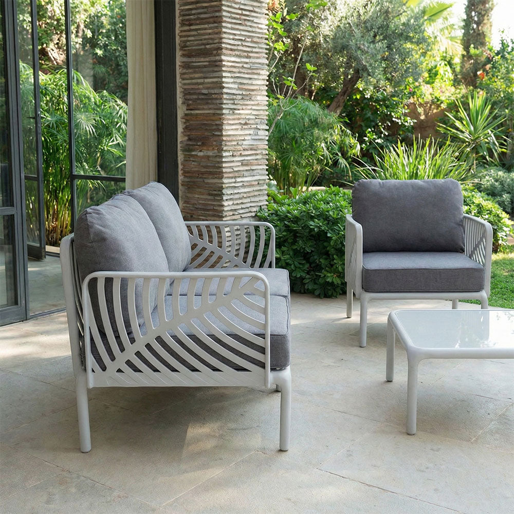 Idealan za vrtove, terase, trijemove i verande, set Kenzia unosi dašak elegancije, dizajna i prirodne inspiracije u vaše vanjske dnevne prostore, pretvarajući ih u pažljivo uređena i ugodna mjesta za boravak.